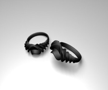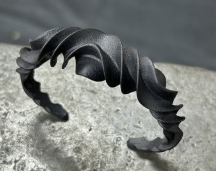 This line of jewelry was inspired by a 600 BCE Nordic Bronze Age neck ring. The pieces were developed as 3D models and produced as 3D prints in semi-gloss black nylon. Contemporary - Light weight - Nonbinary |